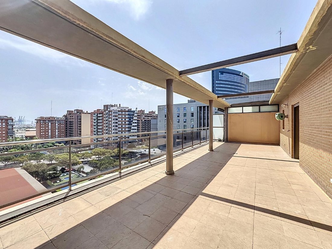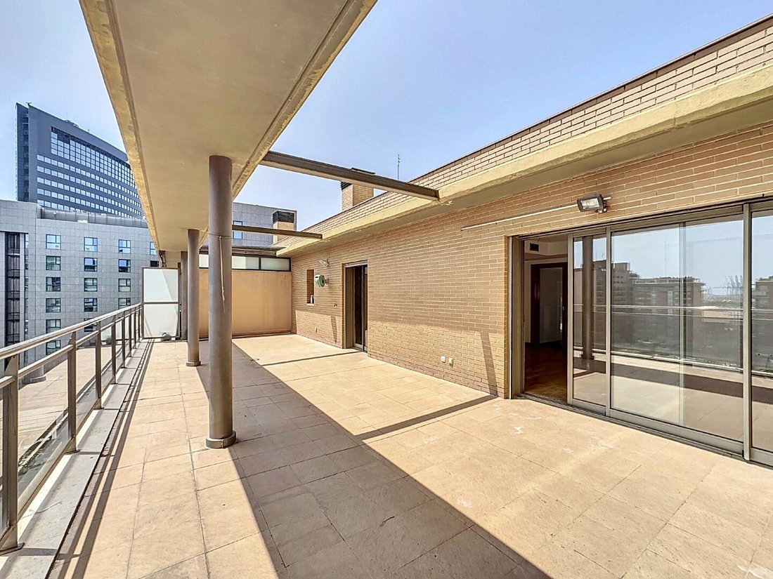 Situado en la prestigiosa calle Trafalgar, este ático dúplex se encuentra en el corazón de Penya Roja, uno de los barrios más modernos y funcionales de Valencia. La propiedad goza de una ubicación inmejorable junto al antiguo cauce del río Turia, lindando con la emblemática Ciudad de las Artes y las Ciencias. A escasos metros del Corte Inglés de Avenida Francia y del Centro Comercial Aqua, tendrás acceso inmediato a los mejores servicios, restauración y entretenimiento de la ciudad.