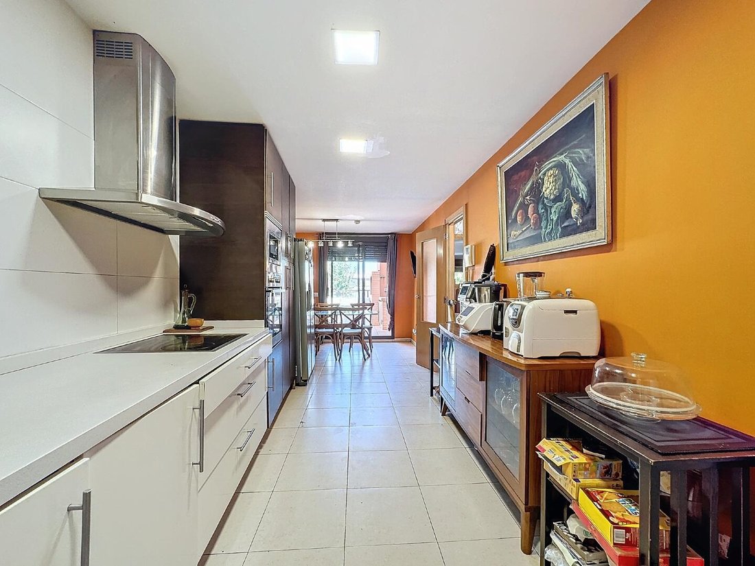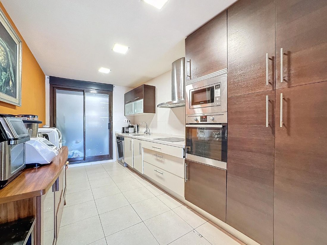 La cocina, amplia y perfectamente equipada, no solo está pensada para cocinar, sino también para disfrutar del proceso. Con su galería adyacente, el confort está asegurado, facilitando el día a día de manera práctica y elegante.