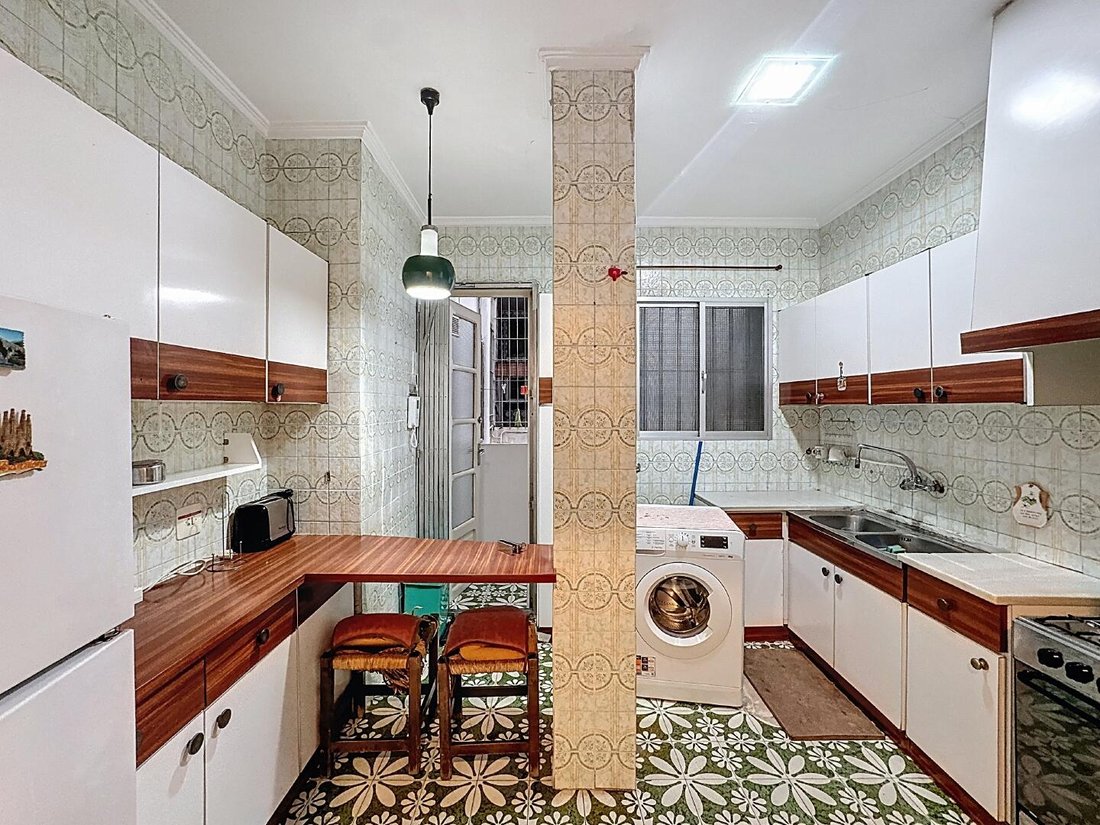 La cocina independiente de esta vivienda en Gran Vía se encuentra ubicada estratégicamente para facilitar tanto la conexión con la zona social como con la terraza interior. Su diseño actual, aunque funcional, permite una reforma integral que puede transformarla en un espacio moderno, sofisticado y altamente versátil. Esta transformación es perfecta para quienes disfrutan del arte culinario o desean integrarla en un concepto más contemporáneo de cocina americana con isla central, peninsula o incluso cocina abierta al salón, creando un espacio fluido y social que se adapte perfectamente a los estilos de vida actuales.