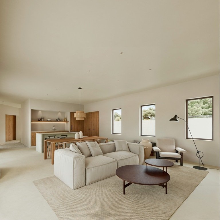 La villa se distribuirá en dos plantas, diseñadas con un concepto abierto que maximiza la luz natural y las vistas. En la planta baja, encontrarás una hermosa cocina totalmente equipada con isla central, un acogedor salón-comedor, un lavadero, un aseo de invitados, dos dormitorios y un baño. Desde el salón y la cocina, tendrás acceso directo al porche, la piscina y la terraza, donde podrás disfrutar de momentos inolvidables con vistas al mar. Además, esta planta cuenta con una zona de barbacoa en pérgola, un trastero y un cuarto de máquinas para la piscina.