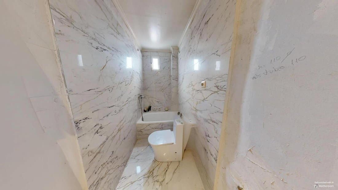 El baño, totalmente reformado, apuesta por un diseño contemporáneo y funcional, con detalles de estilo actual que aportan frescura, comodidad y modernidad. Se trata de una de las estancias clave que marcan el contraste con el resto del piso, brindando un adelanto del enorme potencial de actualización que este inmueble puede alcanzar.