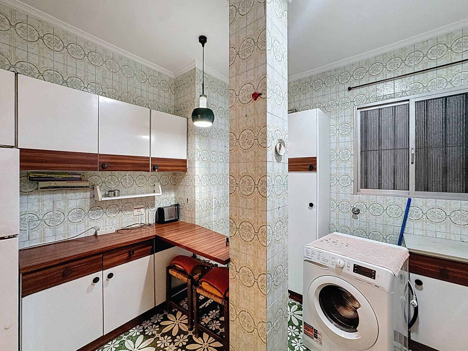 La cocina independiente de esta vivienda en Gran Vía se encuentra ubicada estratégicamente para facilitar tanto la conexión con la zona social como con la terraza interior. Su diseño actual, aunque funcional, permite una reforma integral que puede transformarla en un espacio moderno, sofisticado y altamente versátil. Esta transformación es perfecta para quienes disfrutan del arte culinario o desean integrarla en un concepto más contemporáneo de cocina americana con isla central, peninsula o incluso cocina abierta al salón, creando un espacio fluido y social que se adapte perfectamente a los estilos de vida actuales.